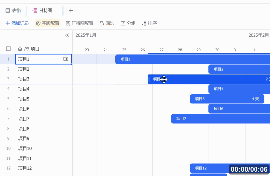 飞书中的视图和原始数据及时同步,好比正在甘特图里拖动进度条,就能够点窜项目进展,既能便利的展现,又能快速点窜数据。